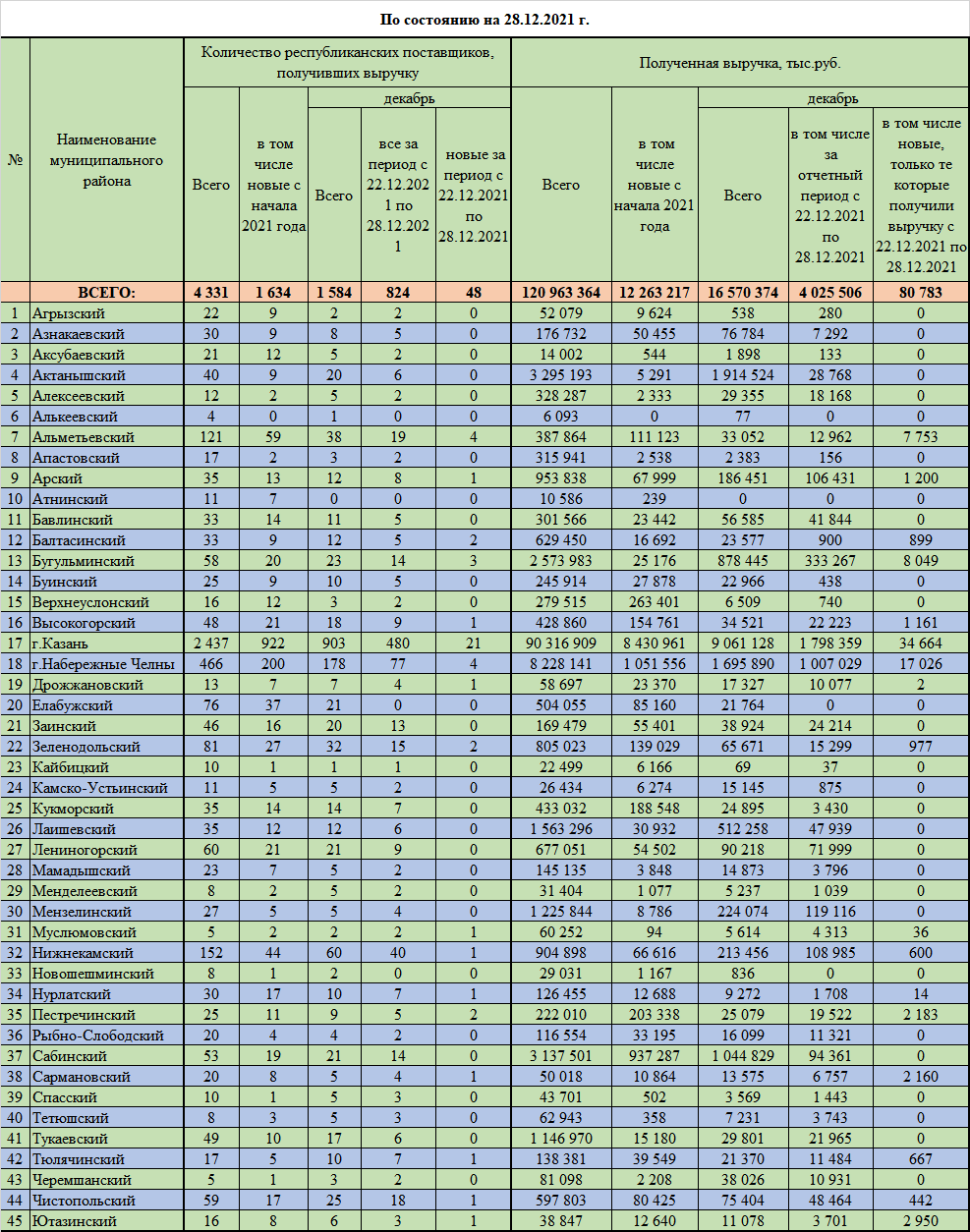 по полученной выручке республиканских поставщиков в ресурсах РМЦ РТ