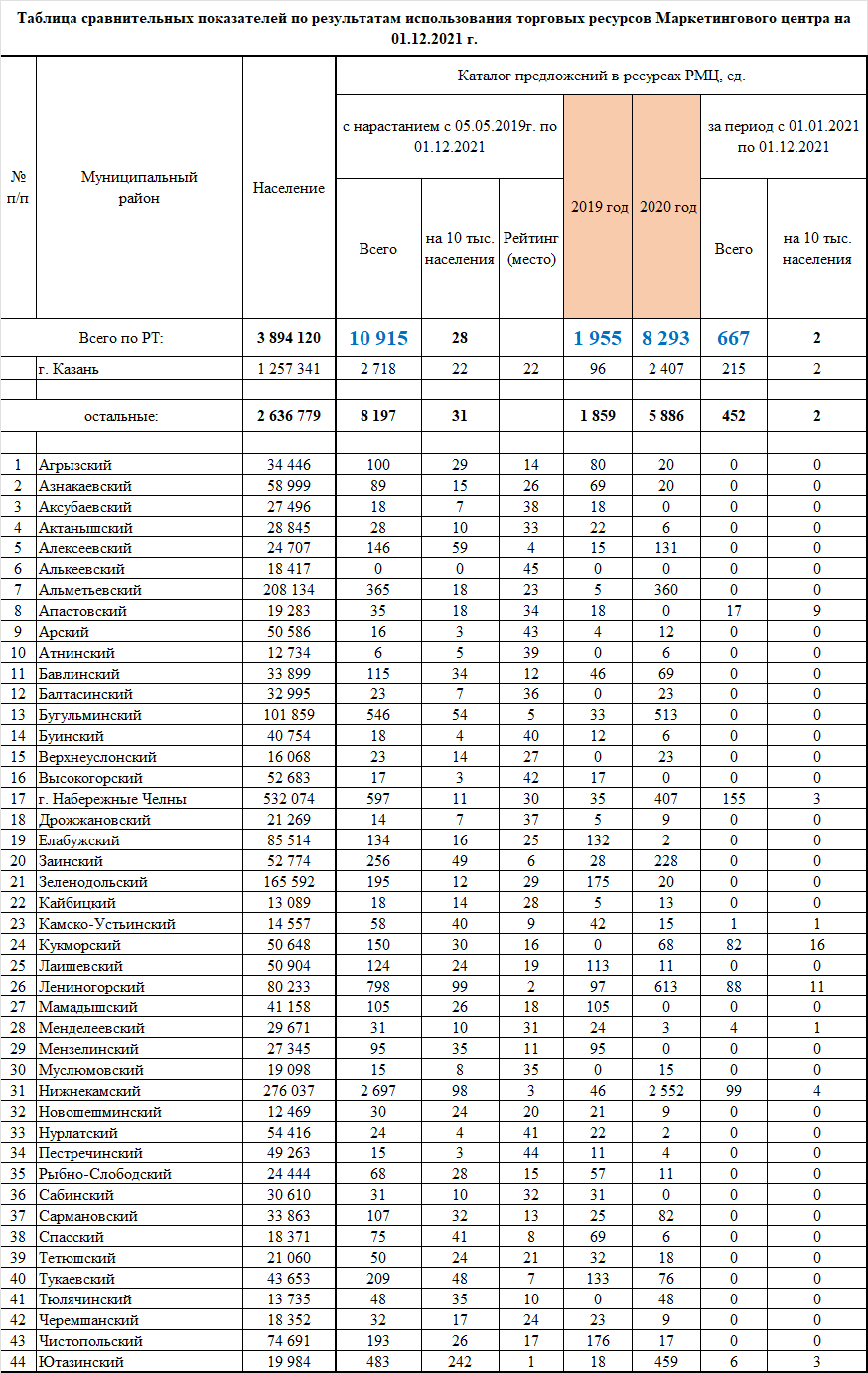 Таблица сравнительных показателей по результатам использования