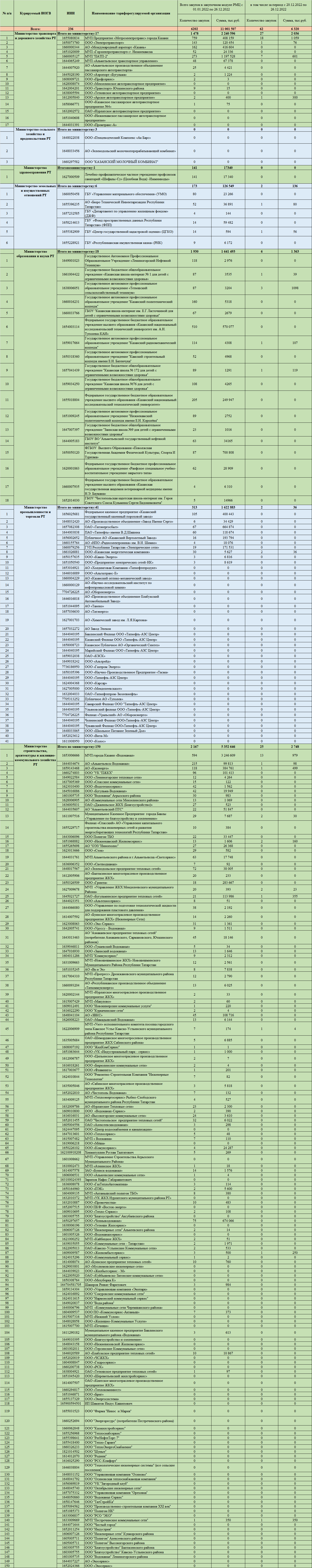 Состоявшиеся закупки тарифорегулируемых организаций в разрезе министерств по РТ