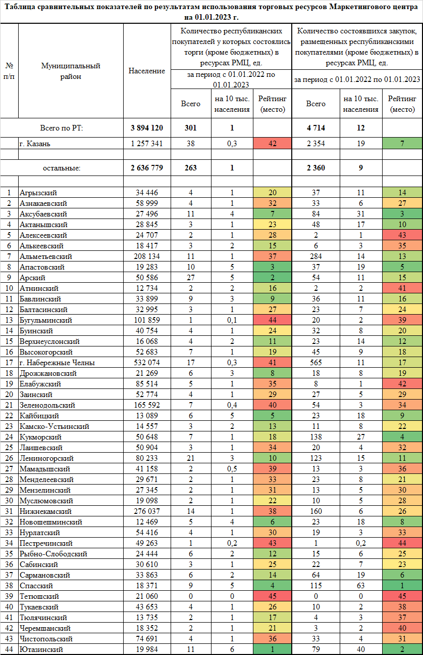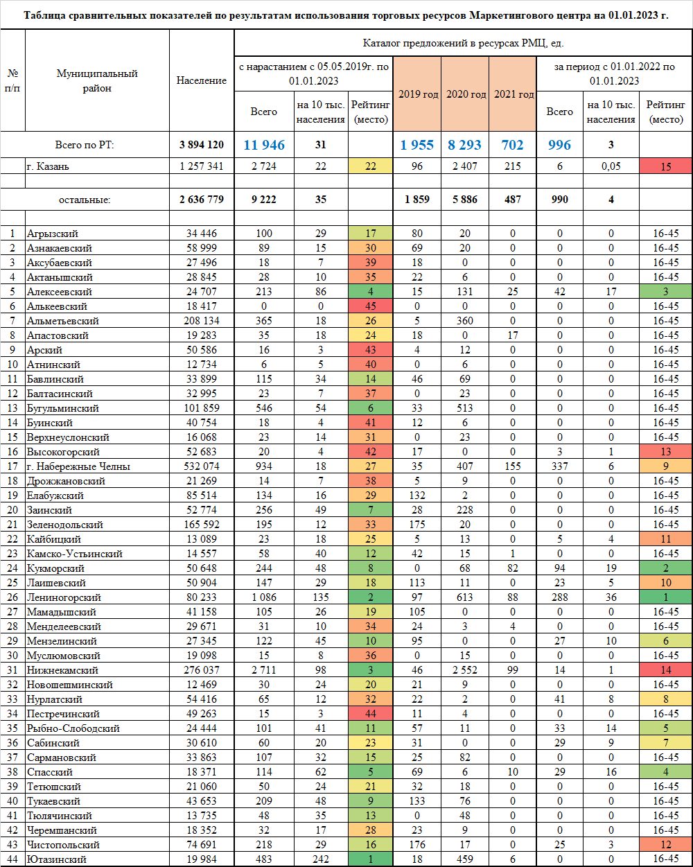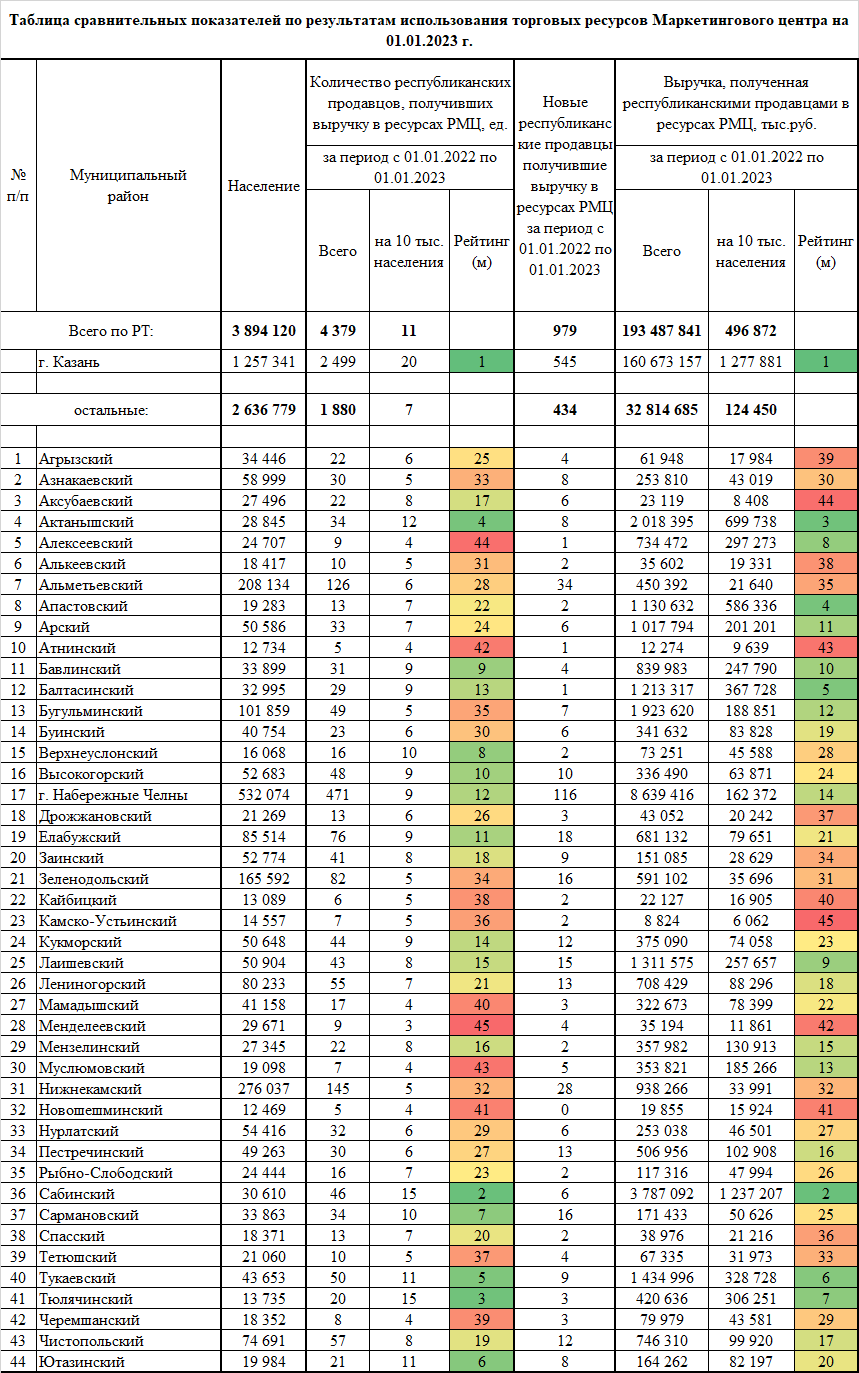 Таблица сравнительных показателей по результатам использования торговых ресурсов Маркетингового центра