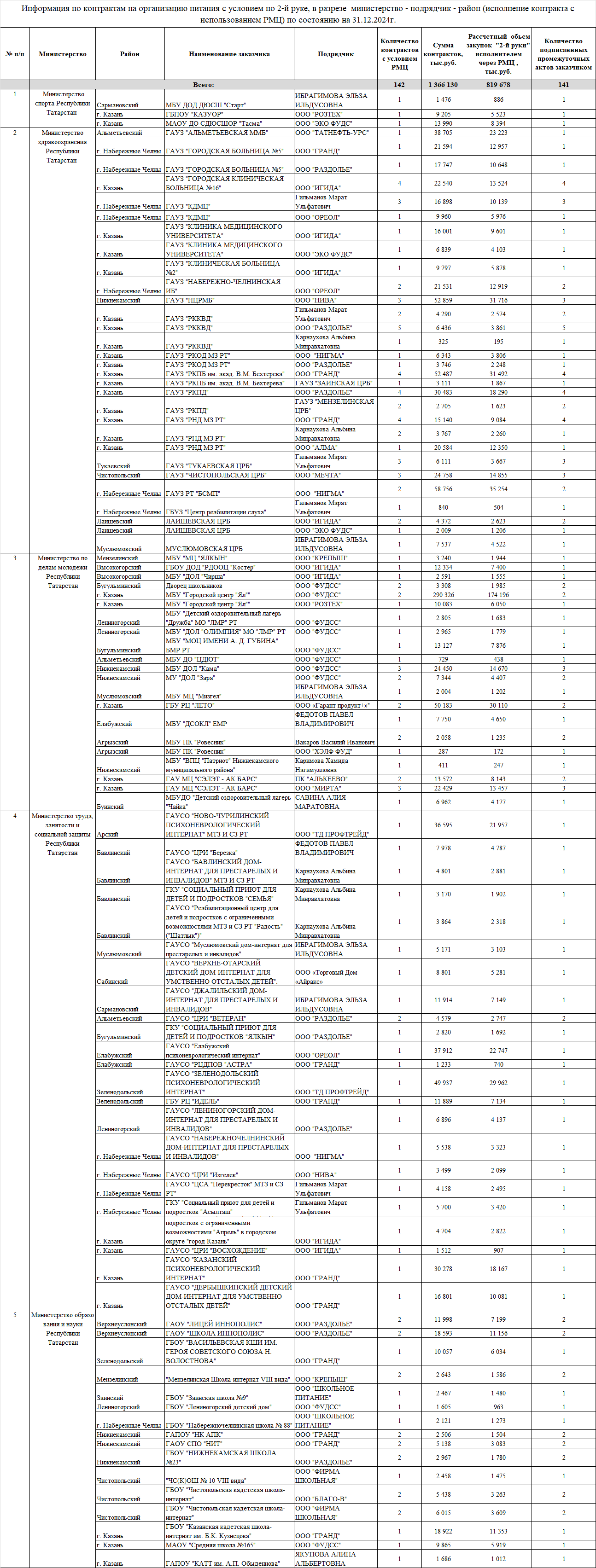Информация по контрактам на организацию питания с условием закупок "2-я рука",