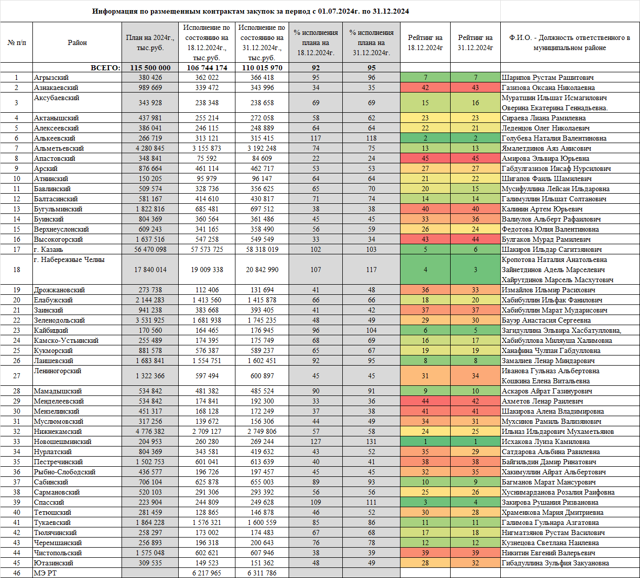 План размещения суммы заказов для получения выручки субъектами МСП Республики Татарстан
