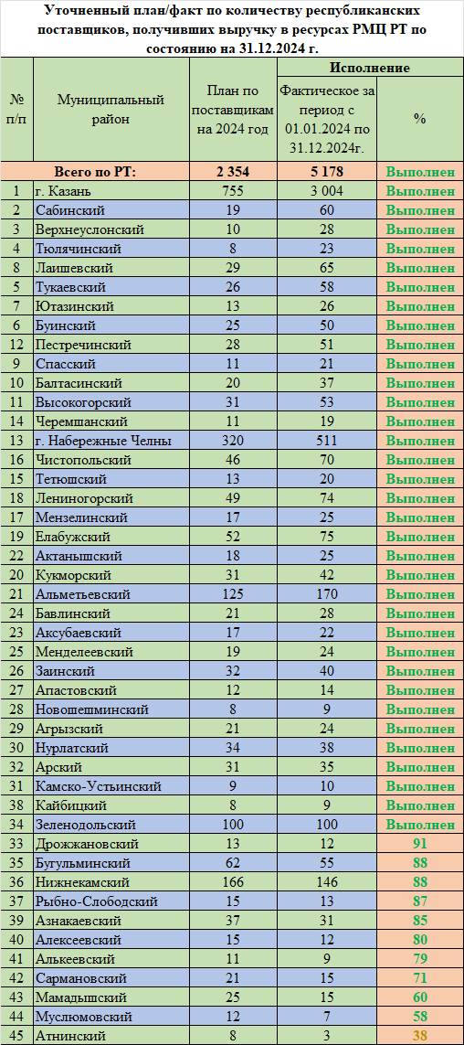 получившим выручку в ресурсах РМЦ РТ (При плане 6 поставщиков на 10 000 человек населения)